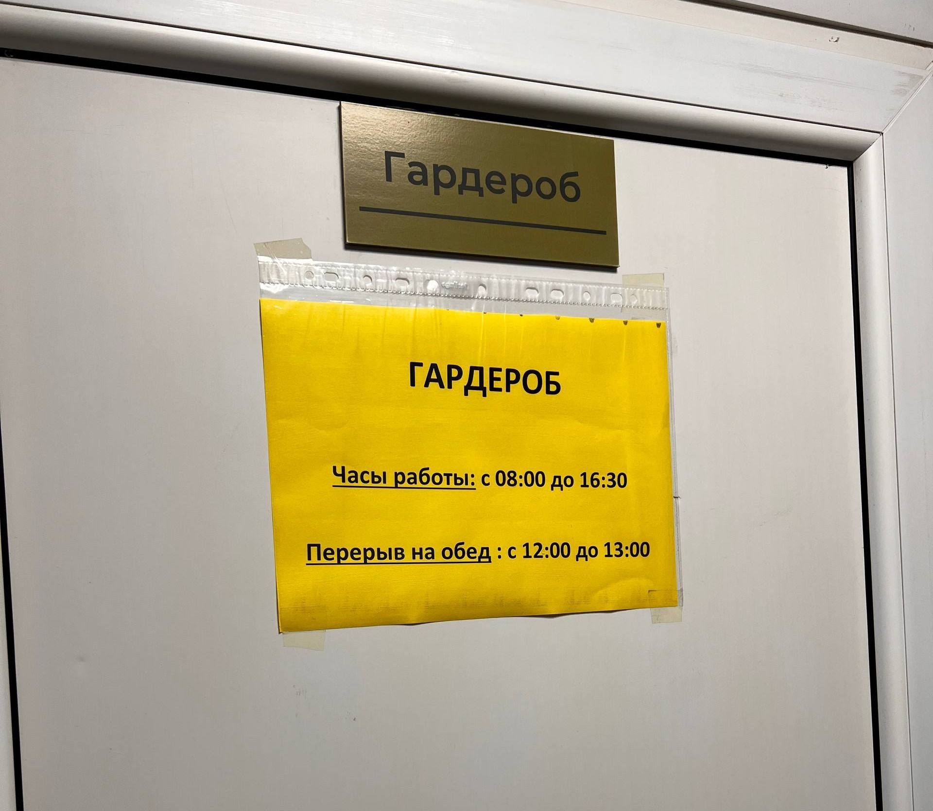 Есть и общие проблемы, которые создают сложности и для других посетителей. Например, из-за отсутствия сменщика гардероб закрывается на обед с 12:00 до 13:00, у посетителей нет возможности ни взять, ни сдать верхнюю одежду в это время. На кабинетах нет табличек с информацией о принимающих в нем врачах.